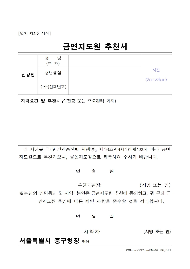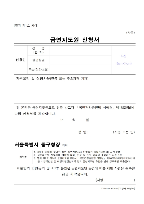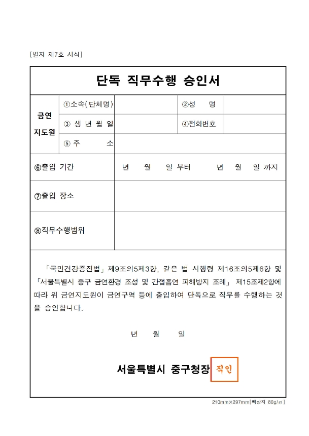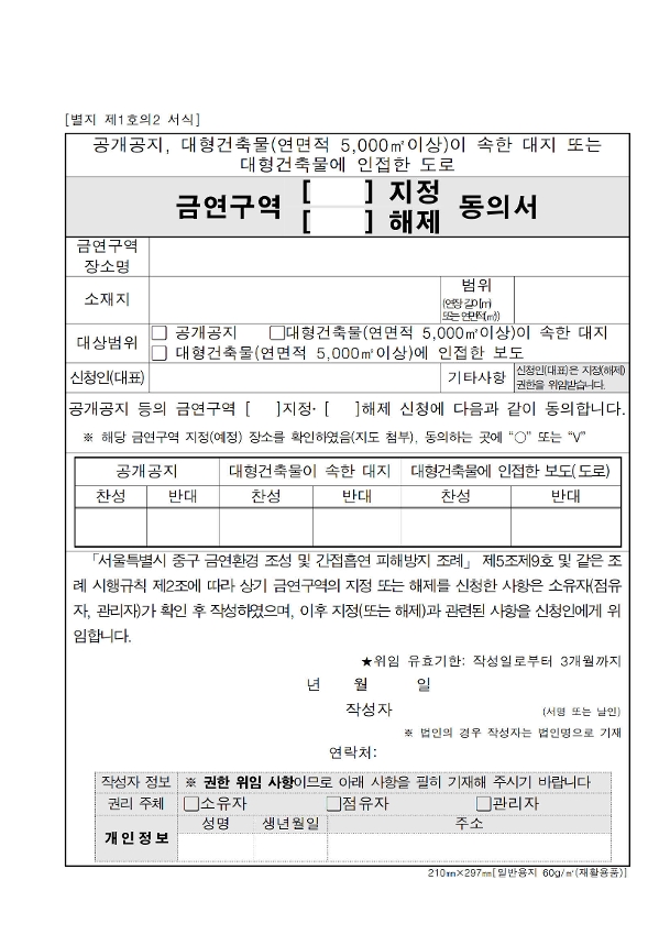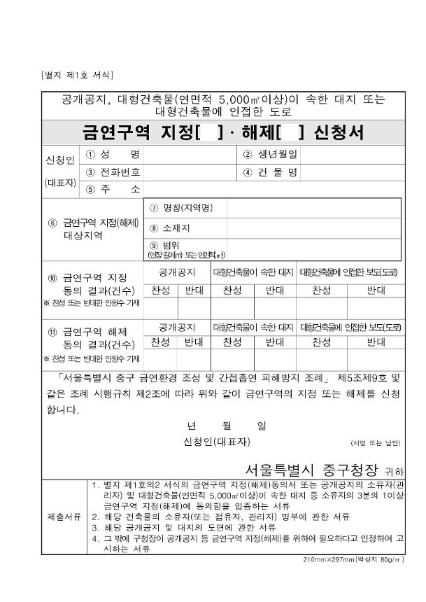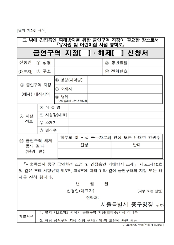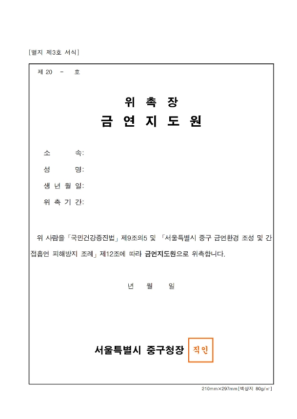 | 서울특별시 중구 금연환경 조성 및 간접흡연 피해방지 조례 전부개정조례안 입법예고 | |||