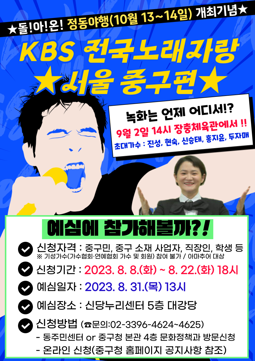| [마감]★KBS전국노래자랑 서울중구편 참가 신청 접수 안내★ | |||