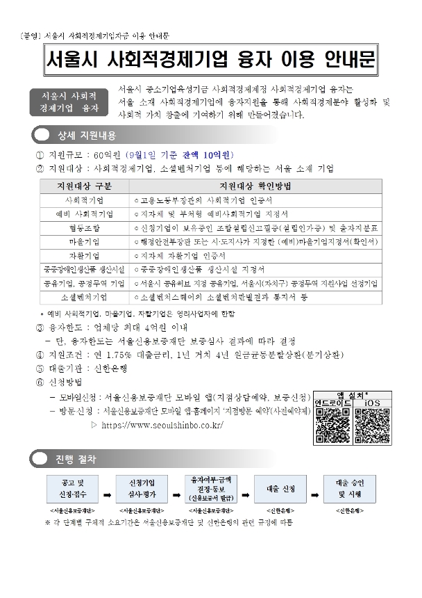 | 서울시 사회적경제기업 융자 이용 안내 | |||