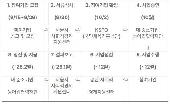 1. 사 업 명 : KSPO 사회적경제 사업비 지원사업 2. 모집기간 : 2025. 09. 15(월) ~ 2025. 09. 29(월) 14:00까지 3. 지원대상 : 서울특별시 소재 중소기업확인서 발급이 가능한 사회적경제기업 5개사 ? ESG, 스포츠, 지역소멸, 저출산 등 지역문제해결 등의 사업을 영위하는 사회적경제기업 우대 ? 중소기업확인서 발급은 URL(https://www.smes.go.kr/main/pageApplyCertificateSme) 참고 4. 지원내용 : ’25. 10 ~ 12월 기간 내 추진 예정인 사업비용 일부 ? 중소기업상생협력기금 관리규정에 따른 사업비 지원 항목 ![]() 5. 지원규모 : 총 5개사, 기업 당 2백만원 ? 관련 사업비는 기업에서 선부담 후, 증빙자료(세금계산서, 현금영수증, 이체증, 법인카드 매출전표) 확인 후 지급 ? 지출증빙은 반드시 사업기간(10.2 ~ 12.31) 내 발생한 지출증빙만 인정 * 부차가치세(VAT)는 지원되지 않으며, 공급가액 금액만을 신청하되 면세(계산서)일 경우에는 전액 신청 가능 6. 신청방법 모집공고 내 첨부파일의 제출서류 작성 후 E-mail(soondchul@sehub.net) 접수 * 제출 이후 유선(02-2088-6306)으로 접수 확인 필수 신청시 ① KSPO 사회적경제 지원사업 신청서 1부 [양식①] ② KSPO 사회적경제 지원사업 계획서 1부 [양식②] ③ 정보활용 동의서 1부 [양식③] ④ 중소기업 확인서 1부(인증기간 유효분) ⑤ 사업자등록증 사본 1부 7. 사업추진 절차 ![]() 8. 기타사항 □ 사업추진 과정에서 제출서류가 허위 및 증빙자료가 미비한 경우, 중소기업상생협력기금 운영·관리 규정 미준수한 경우 지원이 제한될 수 있음 □ 선정 기업은 공단과 비밀유지계약서(NDA)체결 필요 9. 문의 ☞ 서울특별시 사회적경제지원센터 판로지원팀 (☏ 02-2088-6306) * 자세한 내용은 첨부된 모집 공고문을 참고해주시길 바랍니다. |