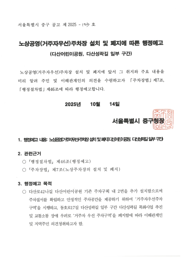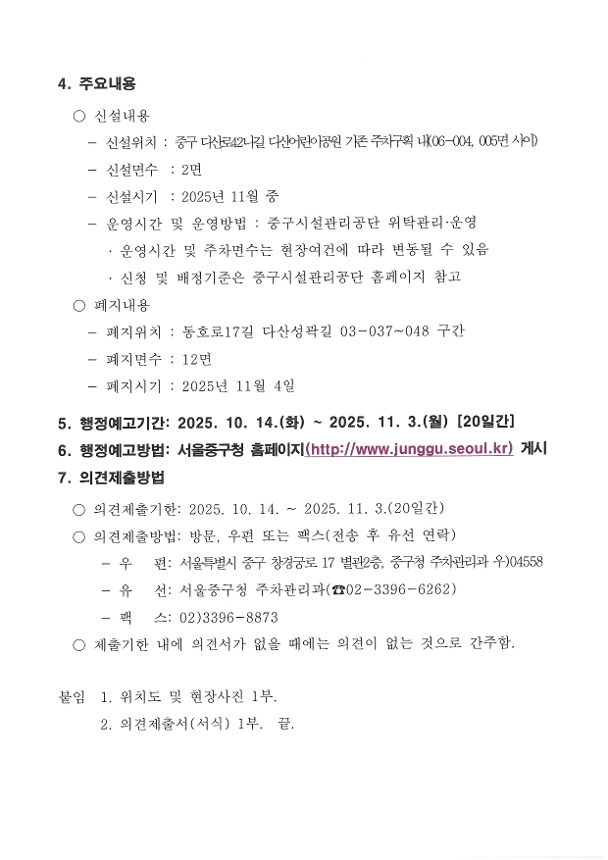 노상(거주자우선)주차장 설치 및 폐지에 따른 행정예고 | |||