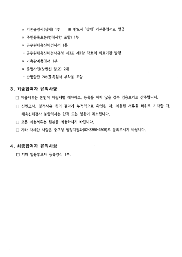 | 서울 중구청 청원경찰 채용시험 최종합격자 공고 | |||