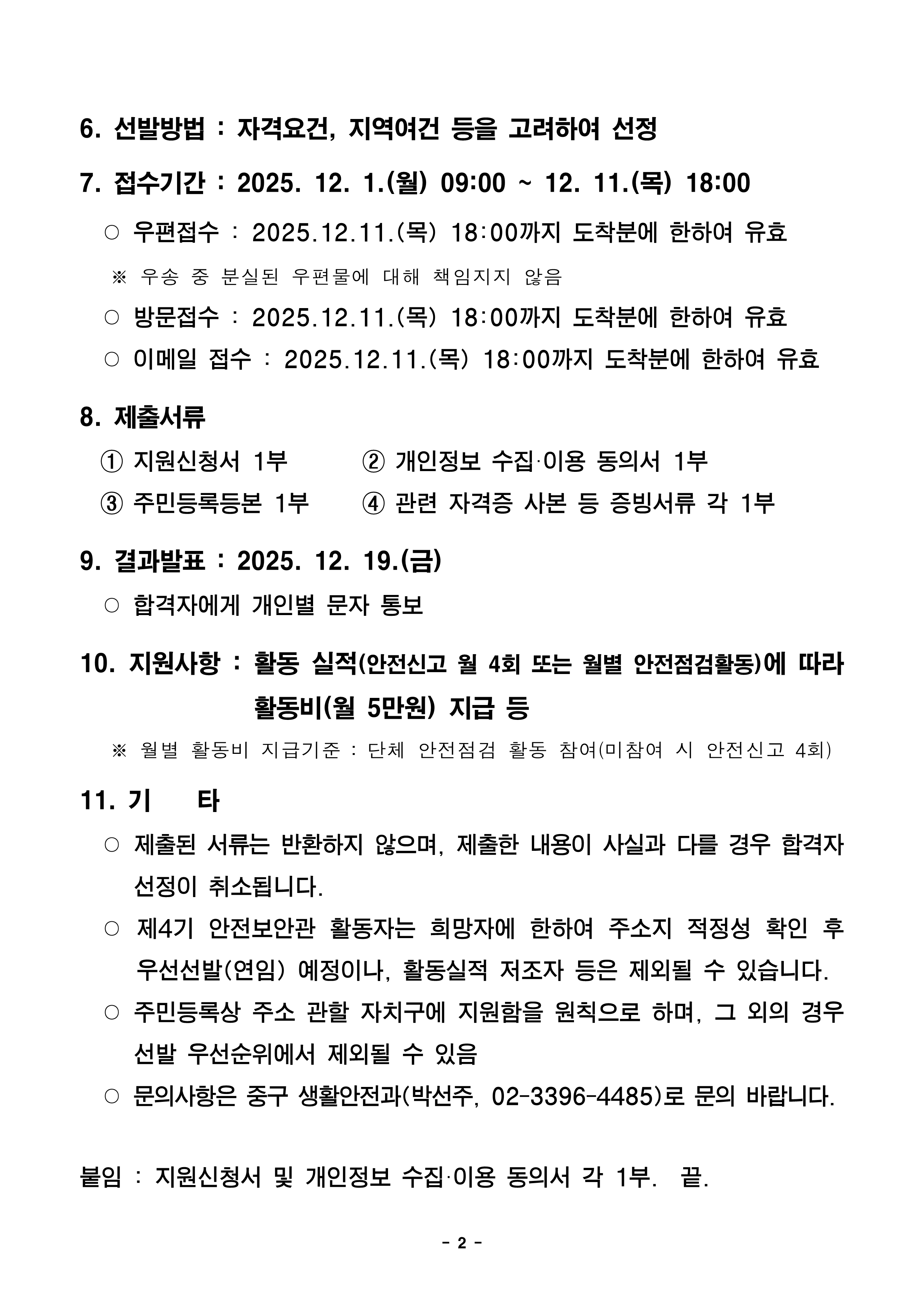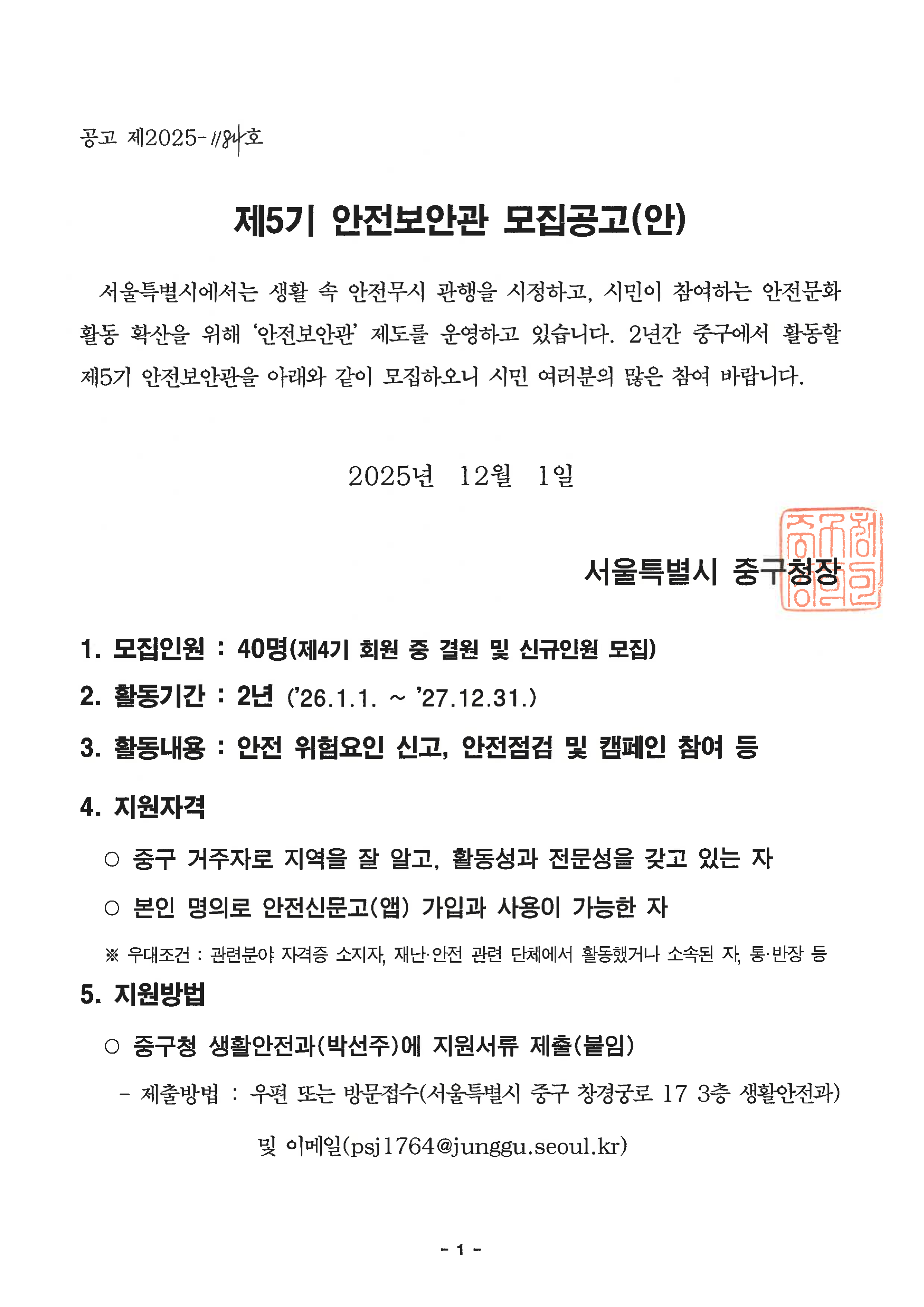 | <제5기 중구 안전보안관 모집 공고> | |||