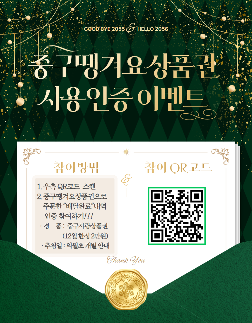 | 중구땡겨요상품권 사용 인증 이벤트(12월 추가 혜택) |