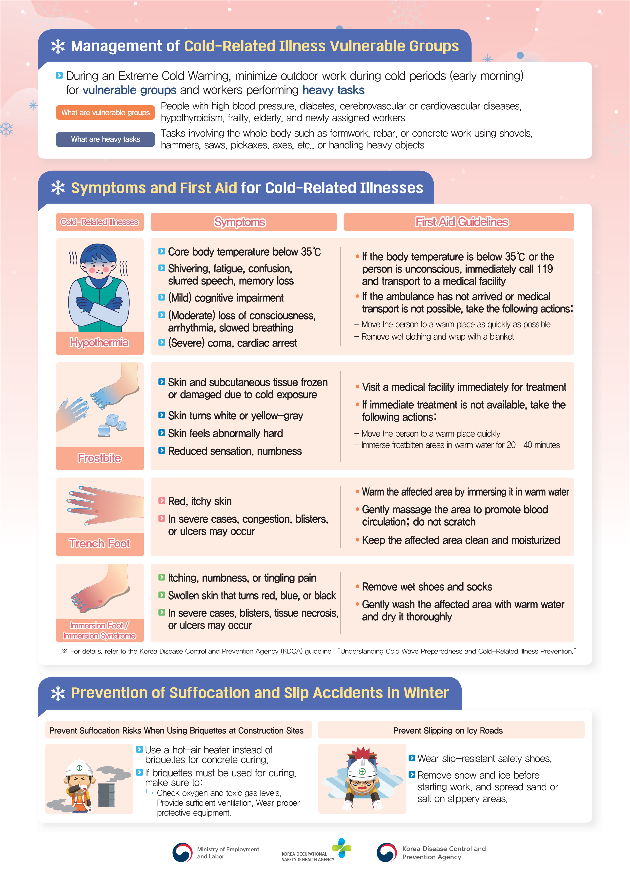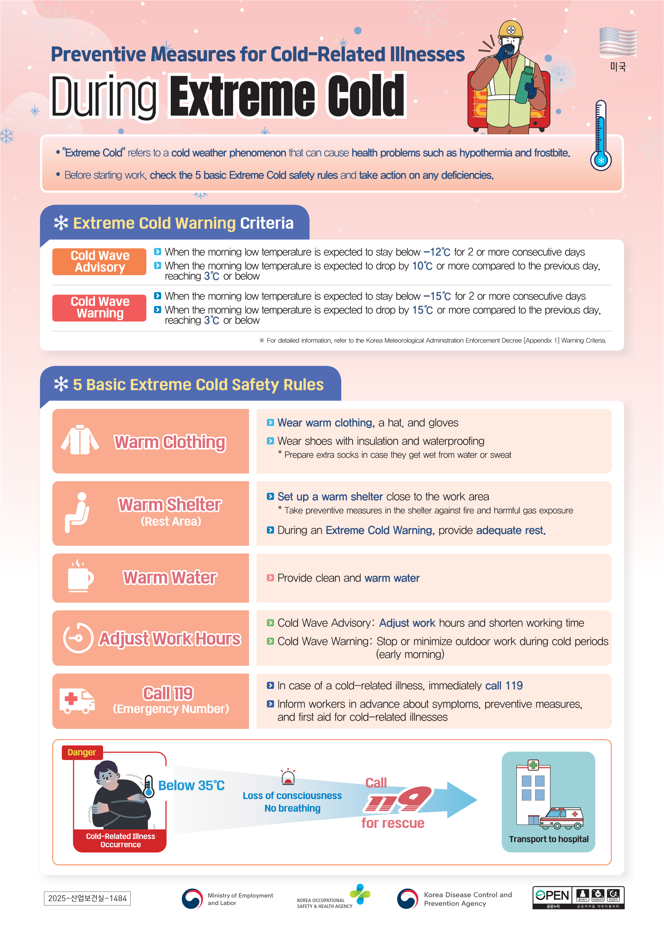 18개 모국어로 번역된 겨울철 한파 대비 한랭질환 예방수칙을 게시하오니, 겨울철 한파에 의한 한랭질환을 예방하는데 사용하시기 바랍니다. 18개 모국어 리스트 1) 미국(영어), 2) 네팔, 3) 동티모르, 4) 라오스, 5) 몽골, 6) 미얀마, 7) 방글라데시, 8) 베트남, 9) 스리랑카, 10) 우즈베키스탄, 11) 인도네시아, 12) 중국, 13) 캄보디아, 14) 키르기스스탄, 15) 타지키스탄, 16) 태국, 17) 파키스탄, 18) 필리핀 ![]()