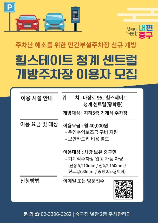 | 힐스테이트 청계 센트럴 개방주차장 이용자 모집 | |||