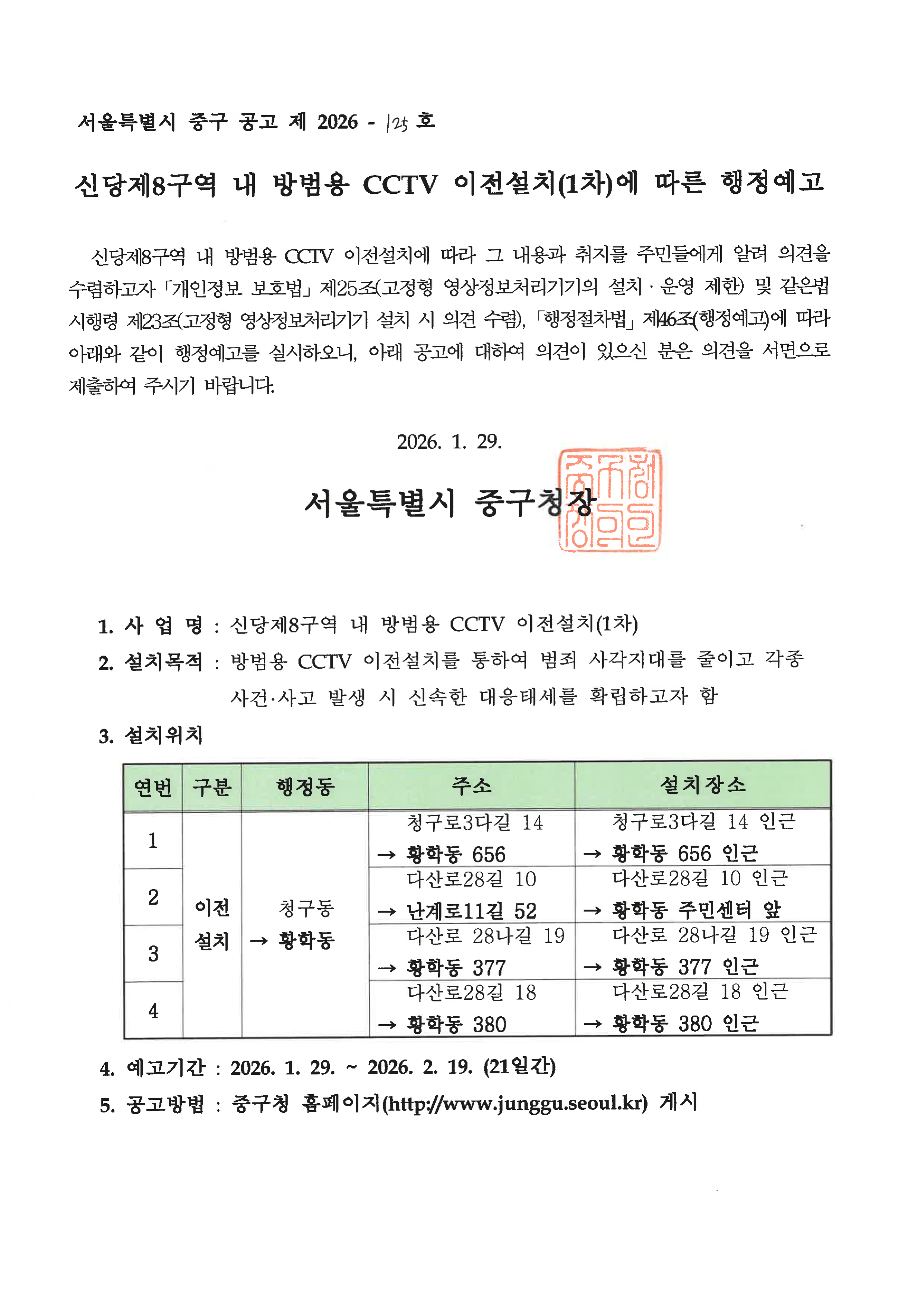 | 신당제8구역 내 방범용 CCTV 이전설치(1차) | |||