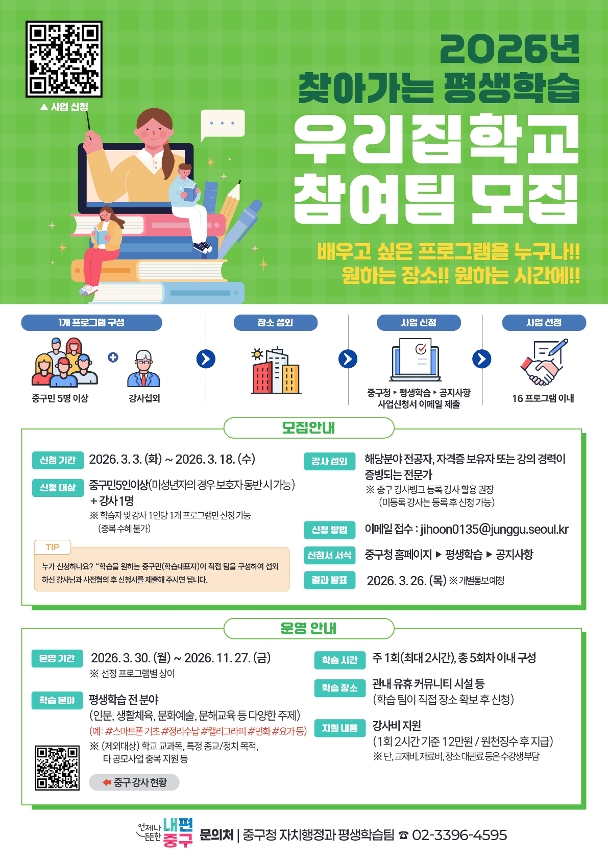 ■ 중구청 자치행정과 평생학습팀(☎ 02-3396-4595)