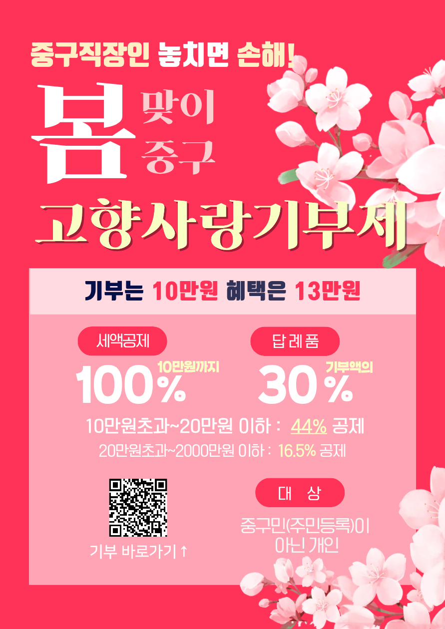 | 중구 직장인 놓치면 손해! ♥ 봄맞이 중구 고향사랑기부제 ♥ | |||
