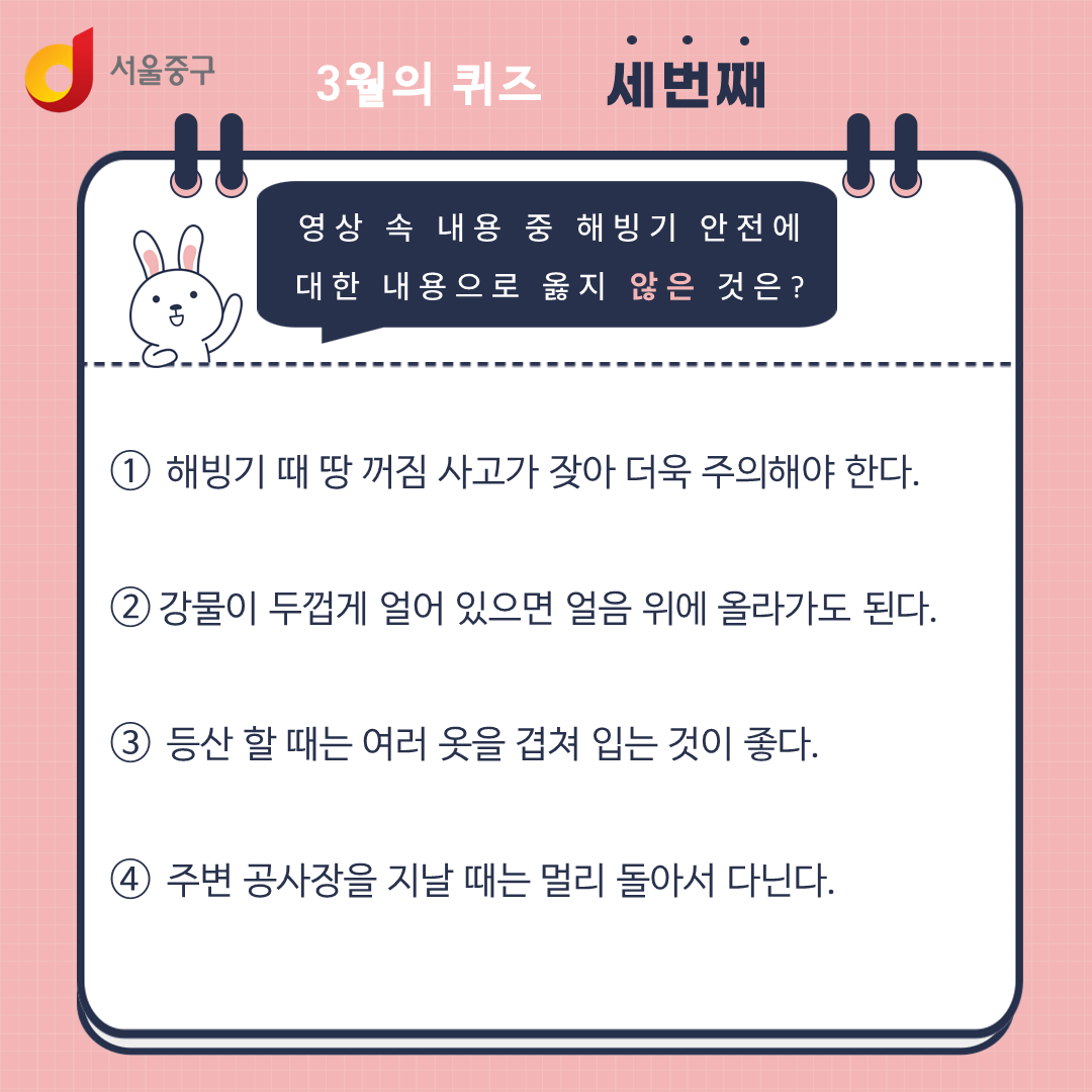 | ('26년 3월) 3. 날씨가 부쩍 따뜻해져 얼음이 녹는 이 시기 해빙기! OO을 주의하라! | |||