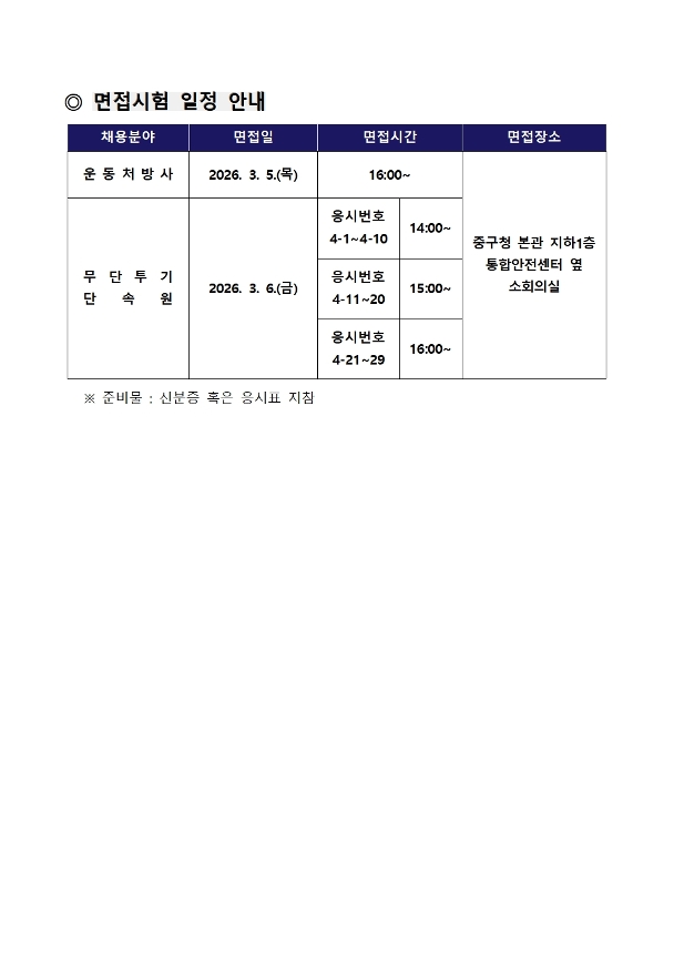 | 서울특별시 중구 임기제공무원 채용시험 서류전형합격자 공고(평생교육, 운동처방사, 무단투기단속) | |||