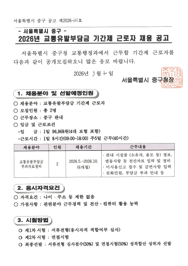 | 2026 교통유발부담금 기간제 근로자(부과자료 정비) 채용 공고 | |||