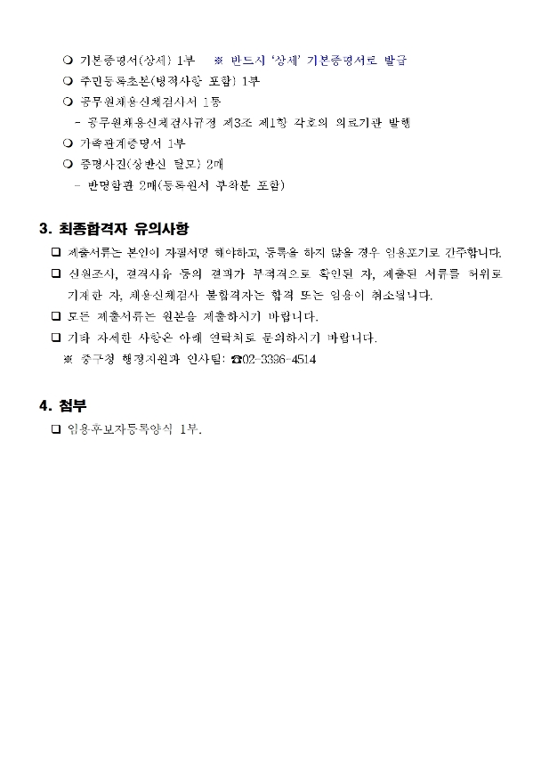 | 서울특별시 중구 임기제공무원 채용시험 최종합격자 공고(교육프로그램 운영, 정신건강전문요원) | |||