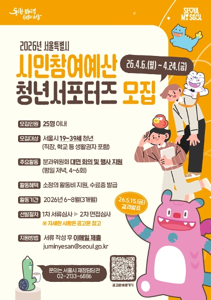 | (서울시/홍보) 2026년 시민참여예산 청년 서포터즈 모집 | |||