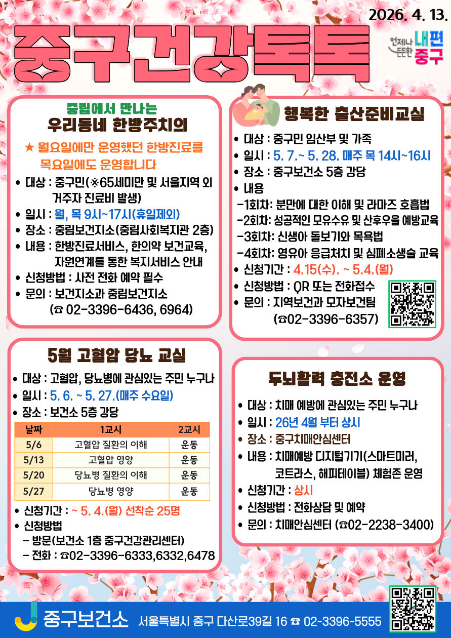 서울시중구청 (우)04558 서울시 중구 창경궁로17 (예관동)