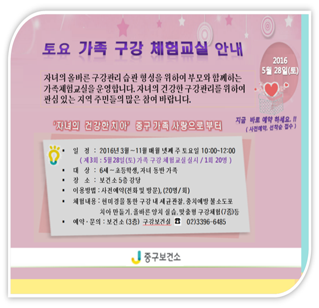| '16년도 제 3 회 토요 가족 구강 체험교실에 참여하세요.! | |||