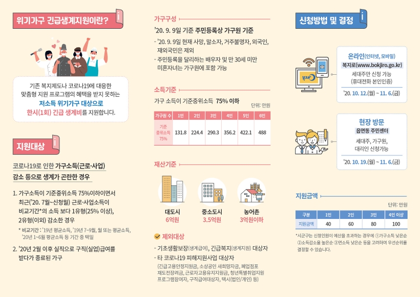 [코로나19 위기가구 긴급생계지원 신청 안내]