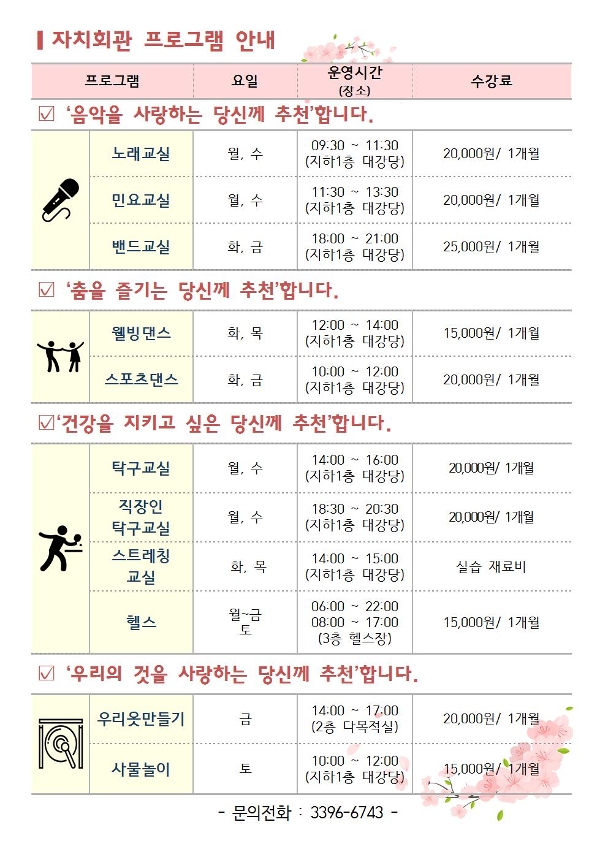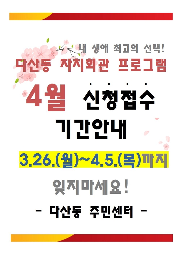 [자치회관] 다산동 자치회관 프로그램 신청접수 안내