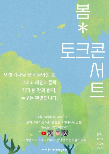 감성 가득한 라이브 음악과 더자람 바리스타가 직접 내려주는 커피와 간단한 브런치까지~ 준비되어 있다고 합니다.^^