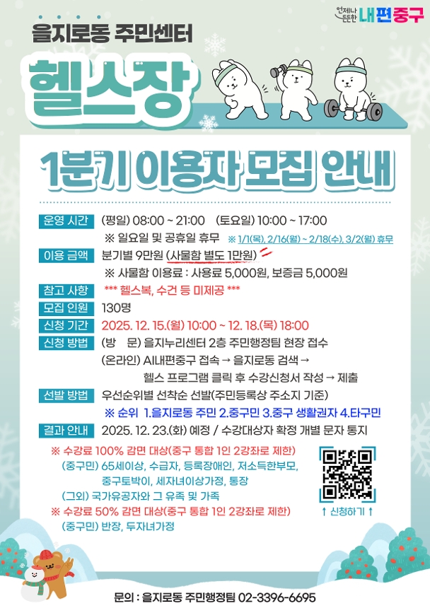 2026년 1분기 을지로동 헬스장 이용자 모집 안내