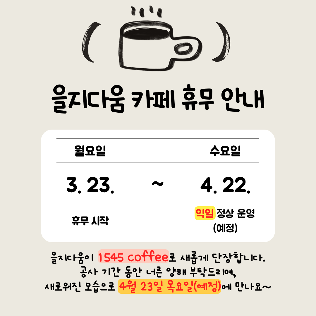 을지다움 카페 휴무 안내