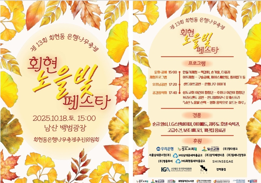 「제13회 회현동 은행나무 축제」에 주민 여러분의 많은 관심과 참여 바랍니다.