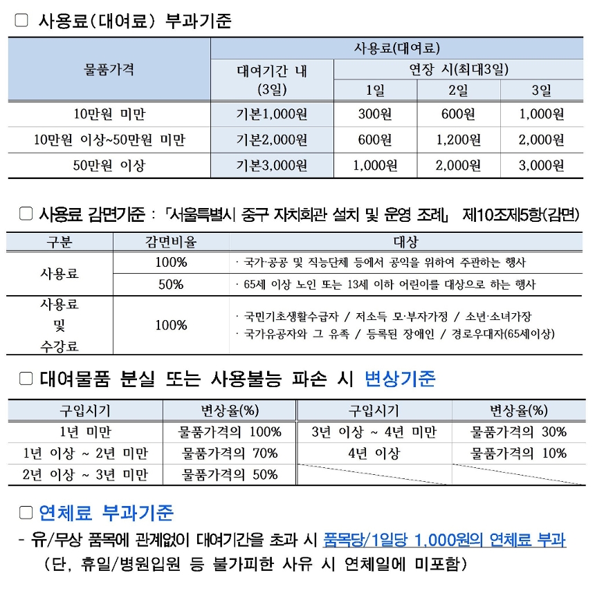 ※ 대여료, 감면기준 등 (현금납부만 가능)