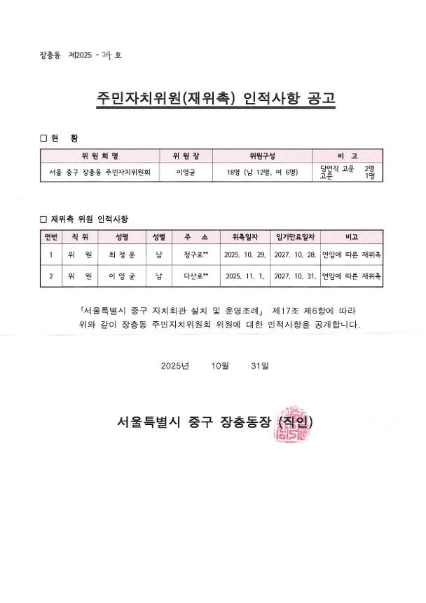 | 다음글 | [공고 제2025-23호] 주민등록 장기 거주불명자 최고 공고 |