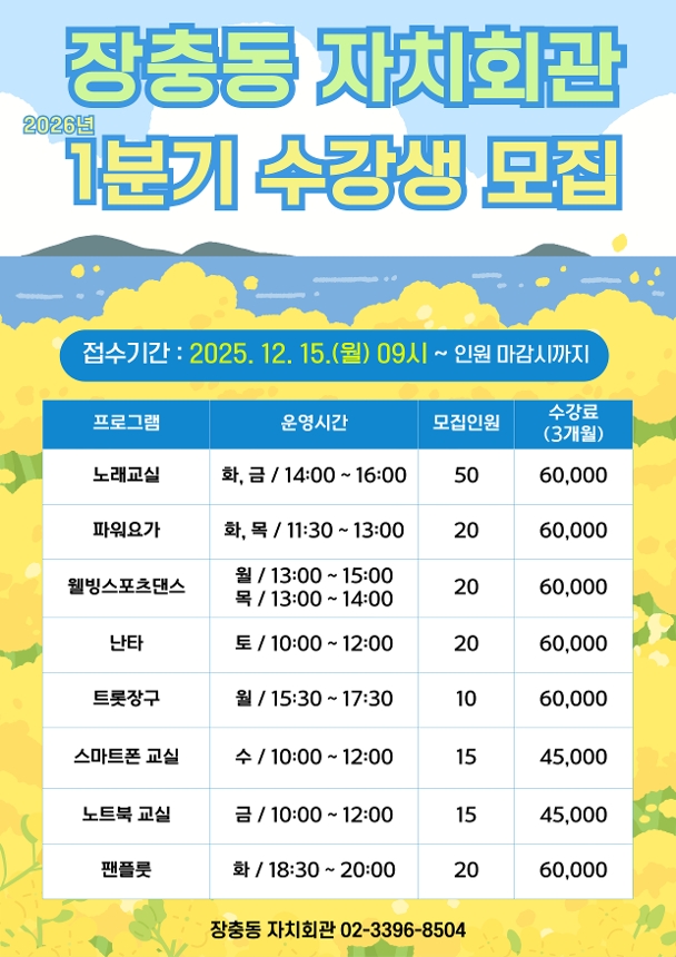 2026년도 1분기 장충동 자치회관 프로그램 안내