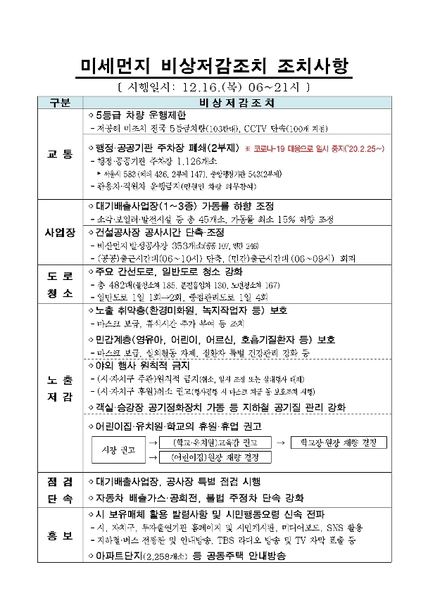 2021. 12. 16.(목) 06시부터 21시까지 수도권 "미세먼지 비상저감조치"가 시행됩니다.