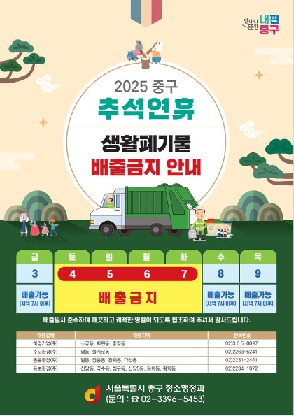 2025년 추석 연휴기간 생활쓰레기 배출금지 안내