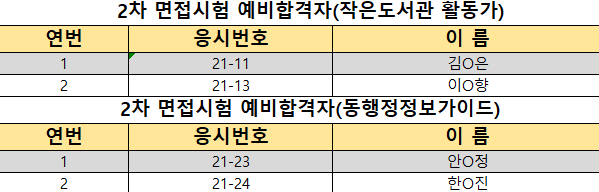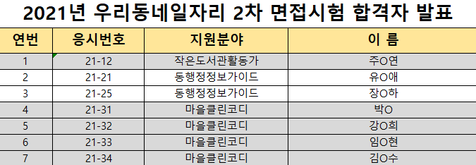 2021년 우리동네일자리 2차 면접시험 합격자 발표