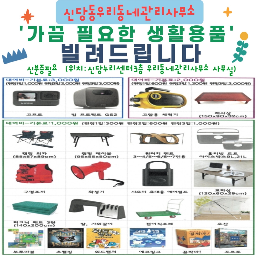 신당동 우리동네관리사무소에서 생활용품을 빌려드립니다!
