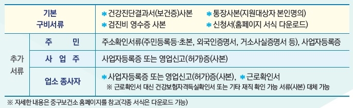 ㅁ 신청대상 : 「식품위생법」에 따른 업종 관련 종사자 중 검진일 기준(2021.11.01.) 현재 중구에 주민등록