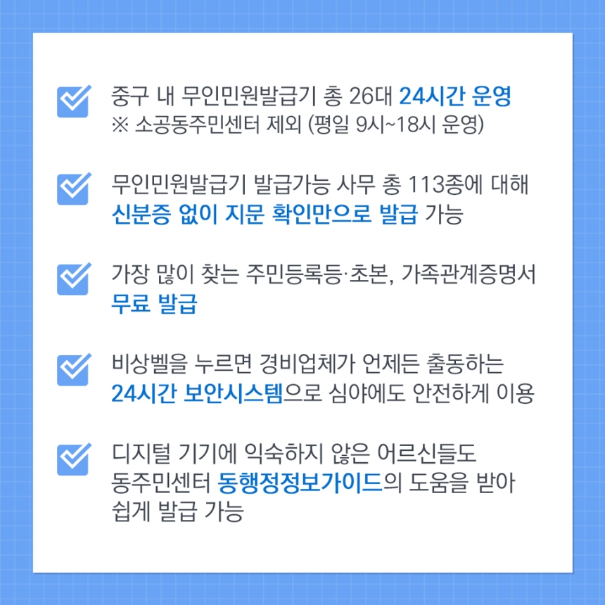 무급휴직 근로자 지원금 지원, 무인민원발급기 및 열린민원창구 운영, 전자증명서 이용방법 홍보