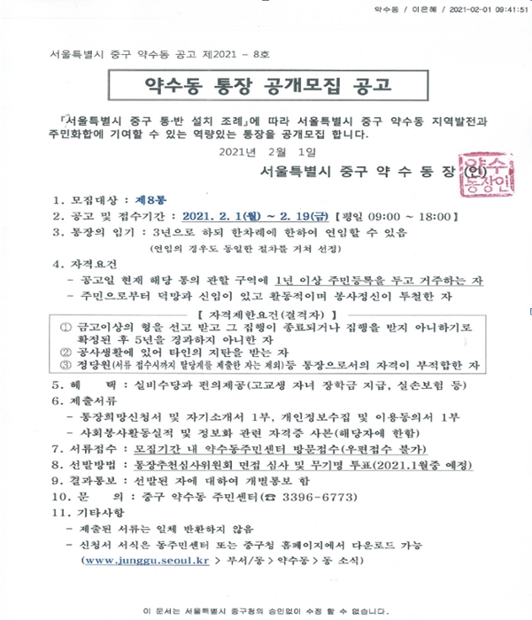 우리동네일자리 최종합격자 공고(생활방역분야)