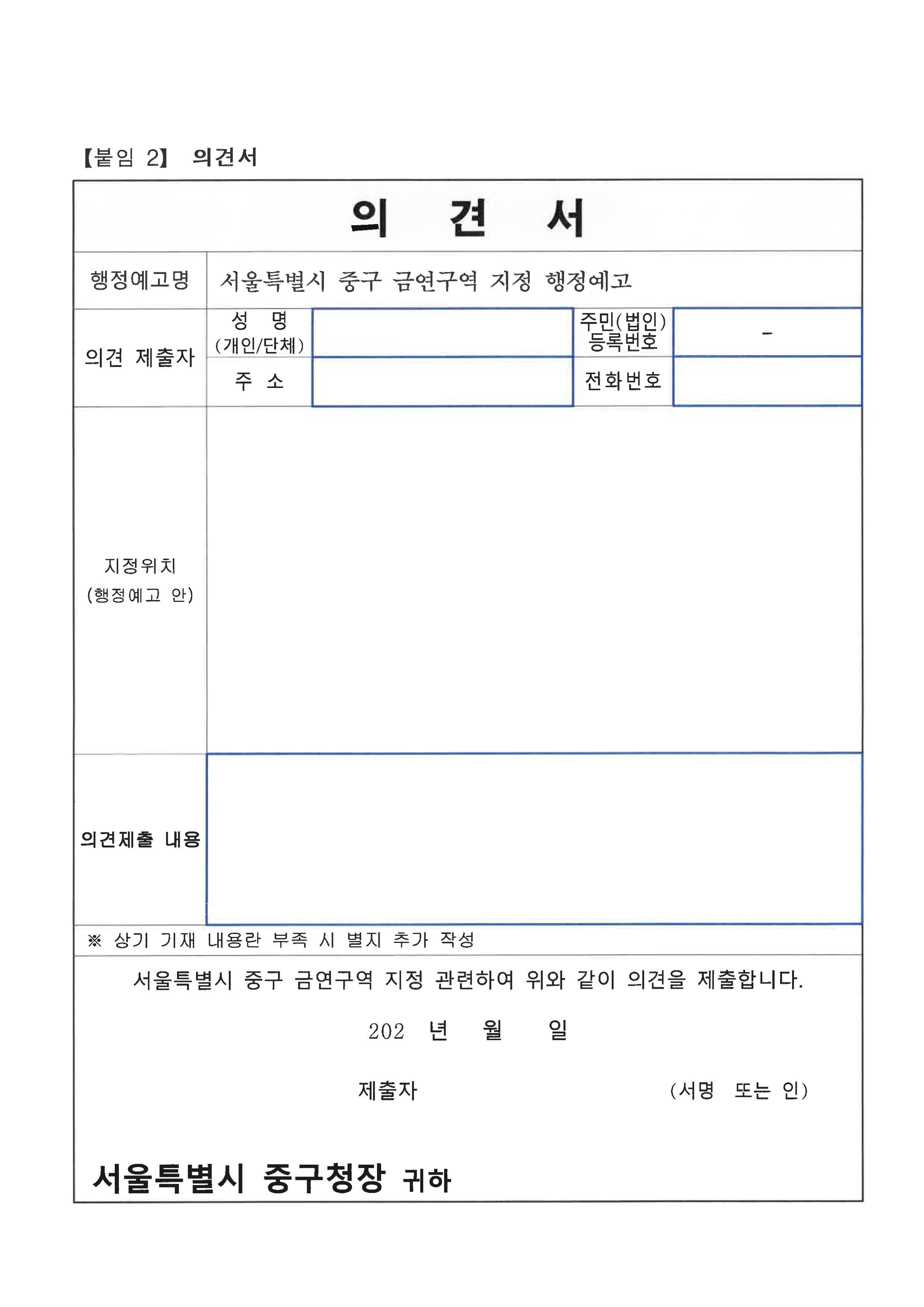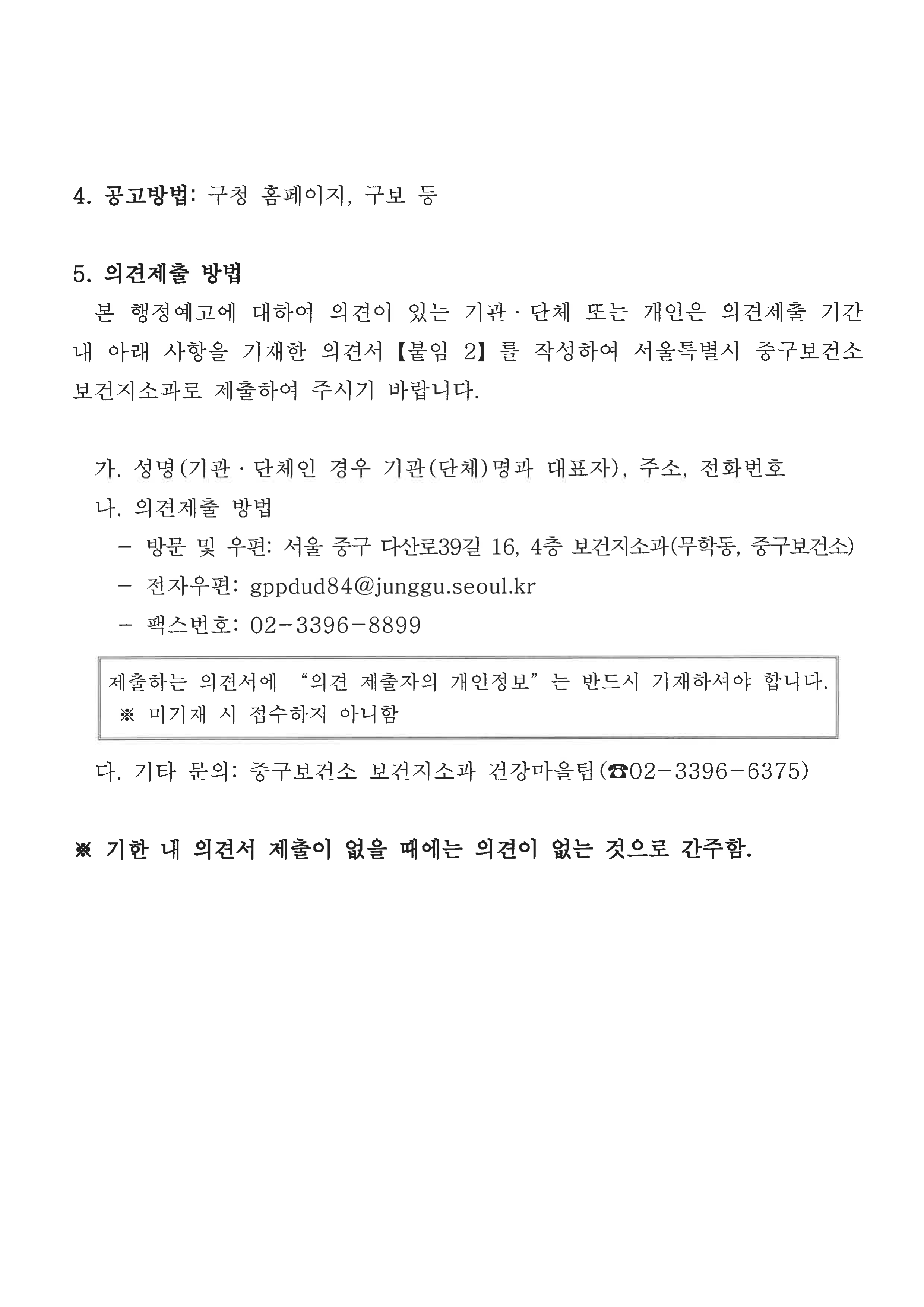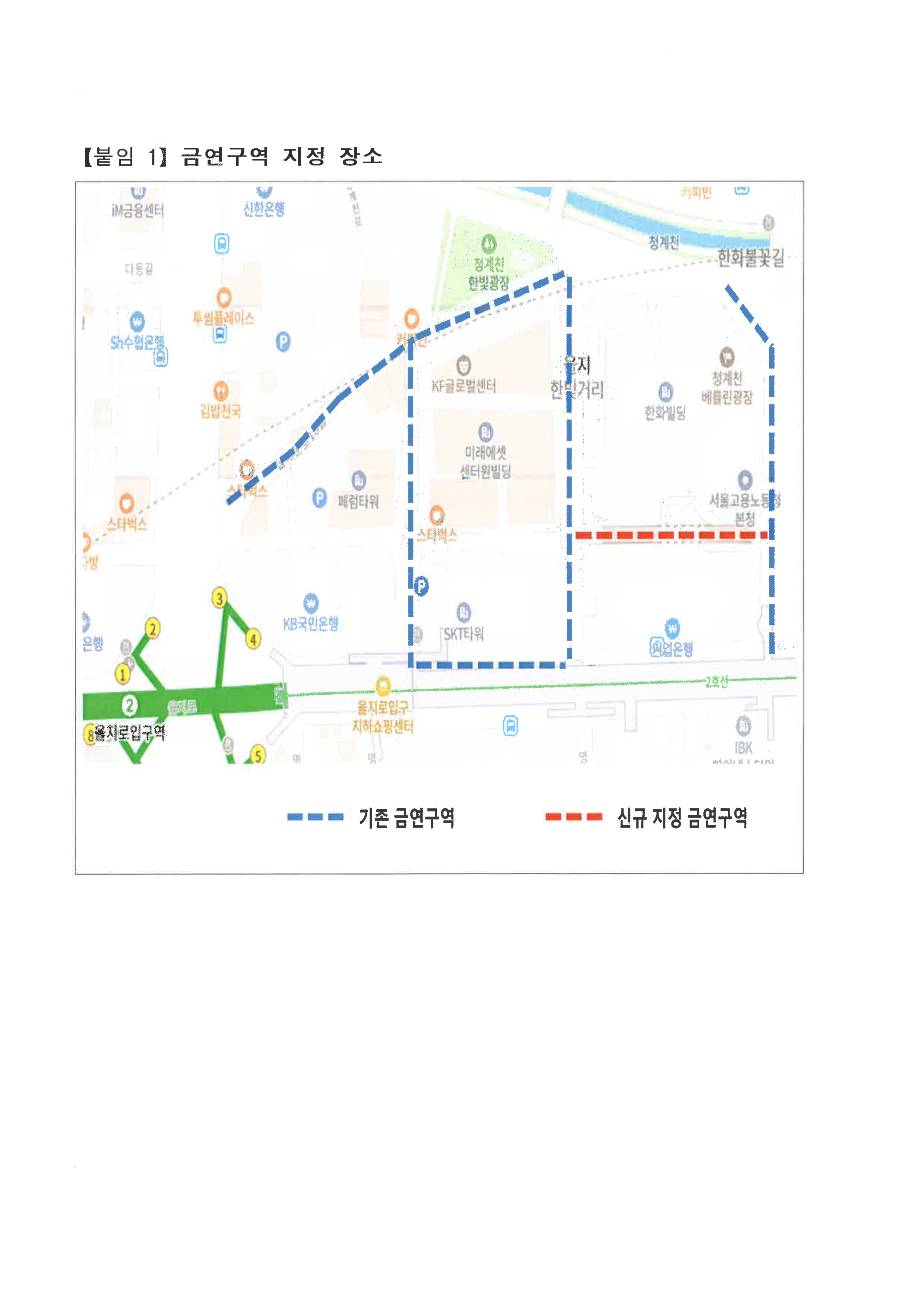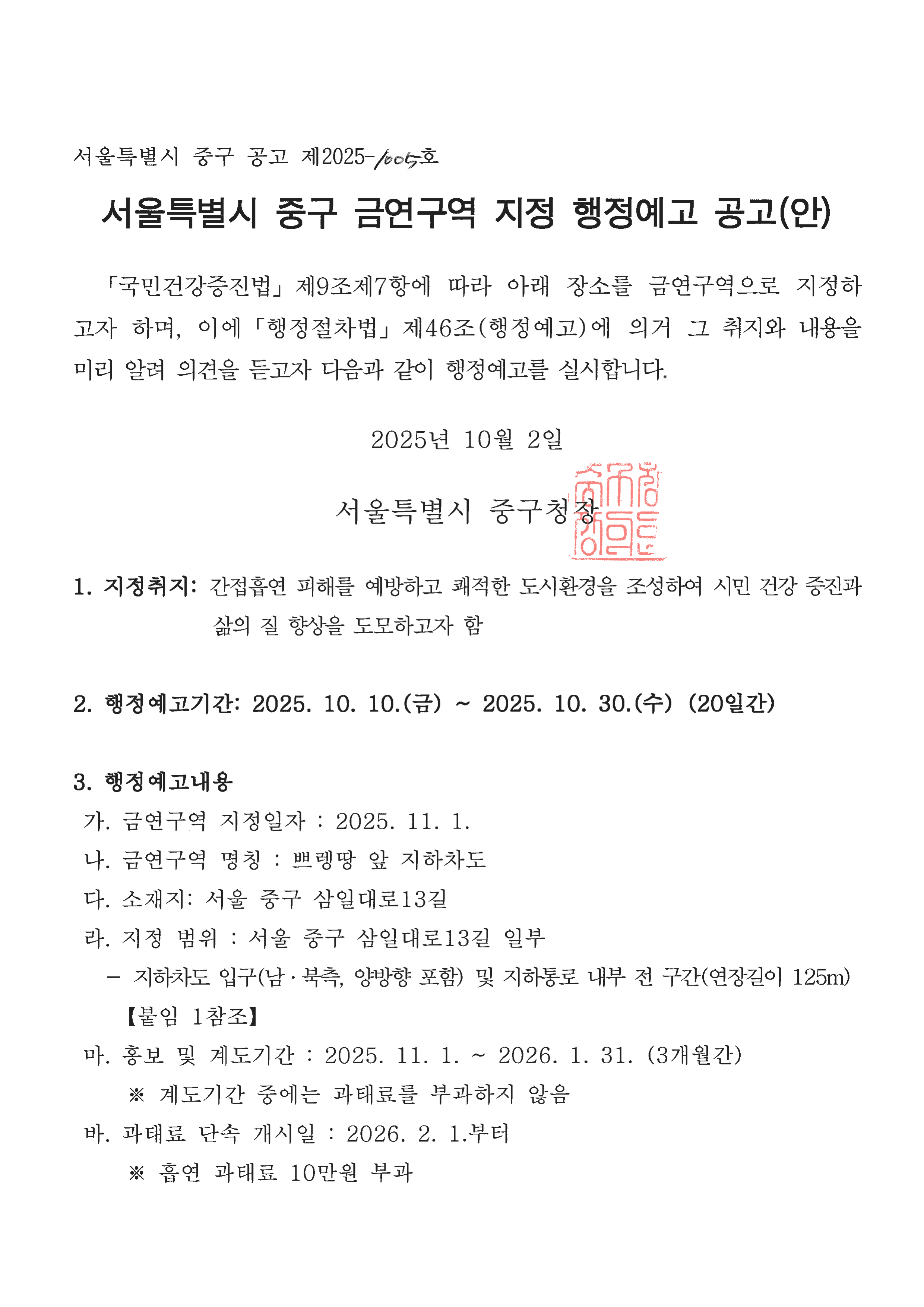 서울특별시 중구 금연구역 지정 행정예고 공고