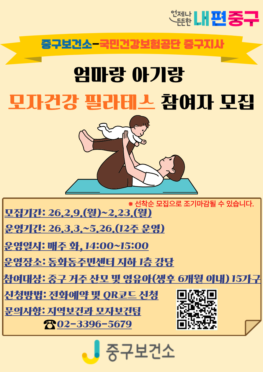 엄마랑 아기랑 모자건강 필라테스 참여자 모집