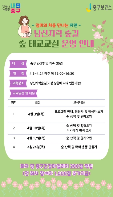 남산자락 숲길「숲 태교 교실」운영 안내