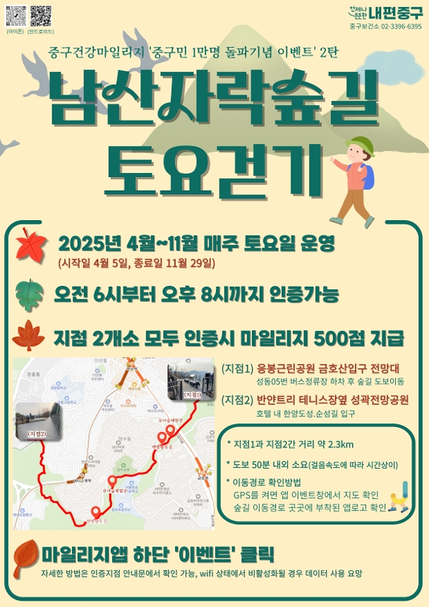 중구건강마일리지 남산자락숲길 토요걷기(4월~11월) 이벤트