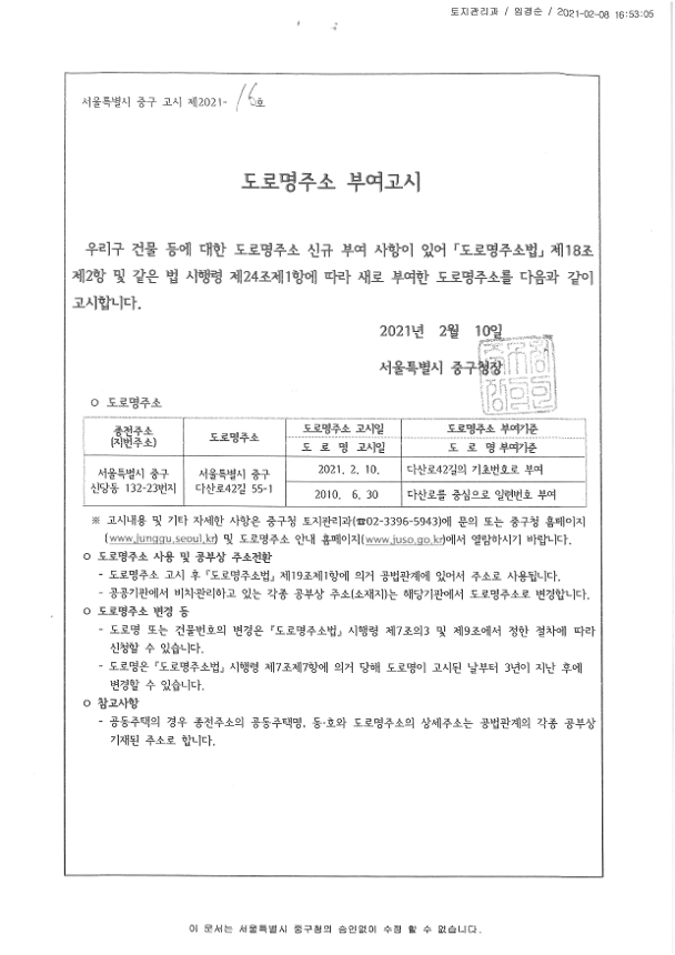 | 다음글 | 도로명주소 폐지고시 |