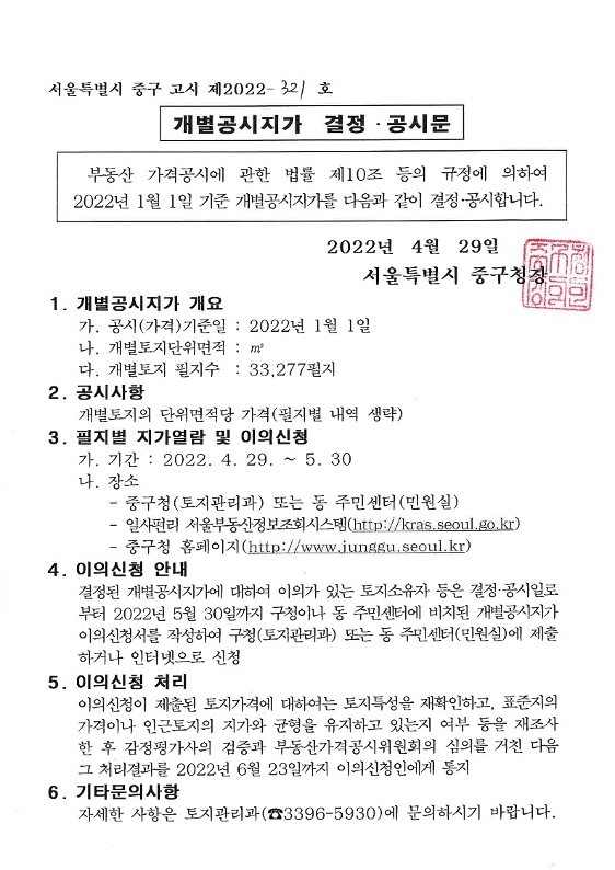 | 제목 | 2022.1.1.기준 개별공시지가 결정 공시 | ||