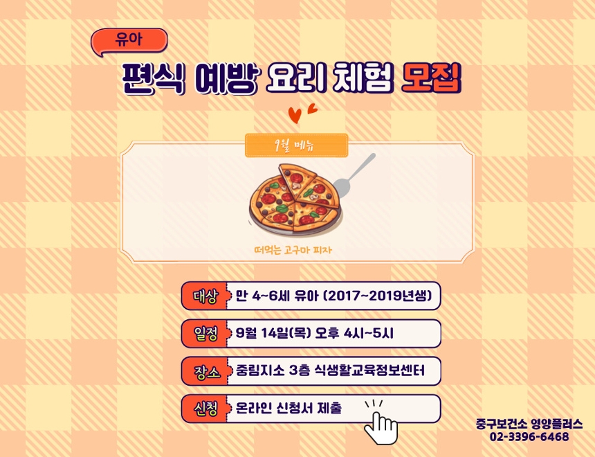 | 제목 | 9월 유아 편식 예방 요리 체험 모집 | ||