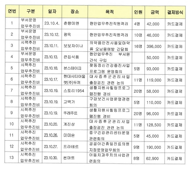 | 제목 | 업무추진비 사용내역(2023년 10월) | ||