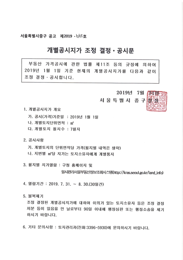 | 제목 | 2019년 1월 1일 기준 개별공시지가 결정ㆍ공시 | ||