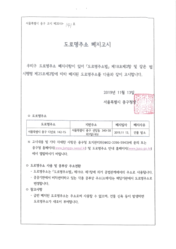 | 다음글 | 도로명주소 폐지고시 |