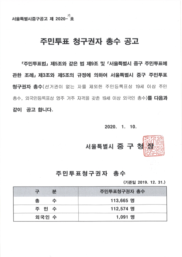 | 제목 | 2020년 주민투표 및 주민소환투표 청구권자 총수 | ||